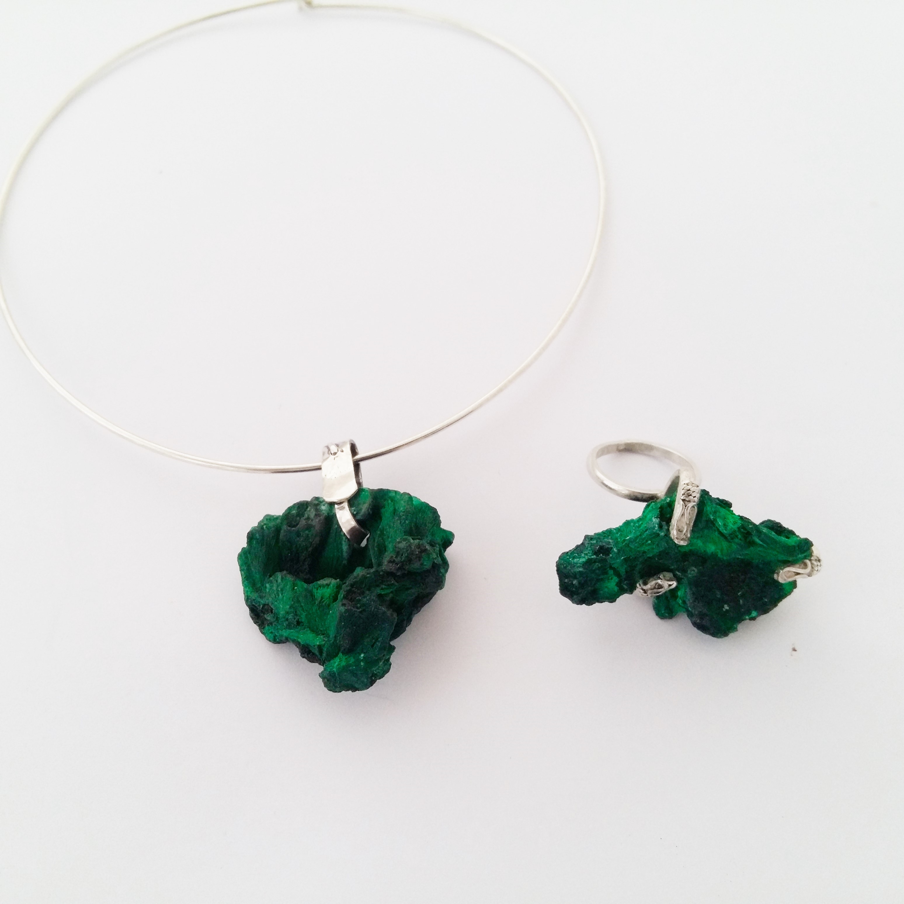 inel si colier din malachit brut